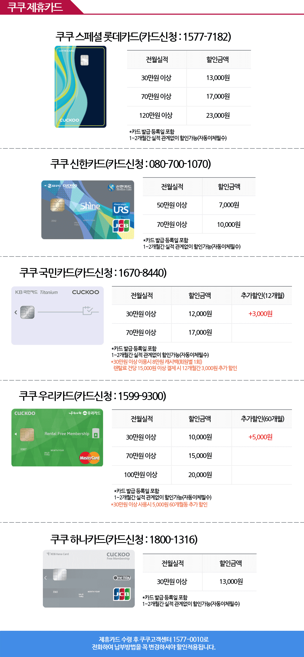 렌탈사 약정기간 소유권이전 렌탈료(월) 간단안내 혜택 카드할인 제휴카드 렌탈신청