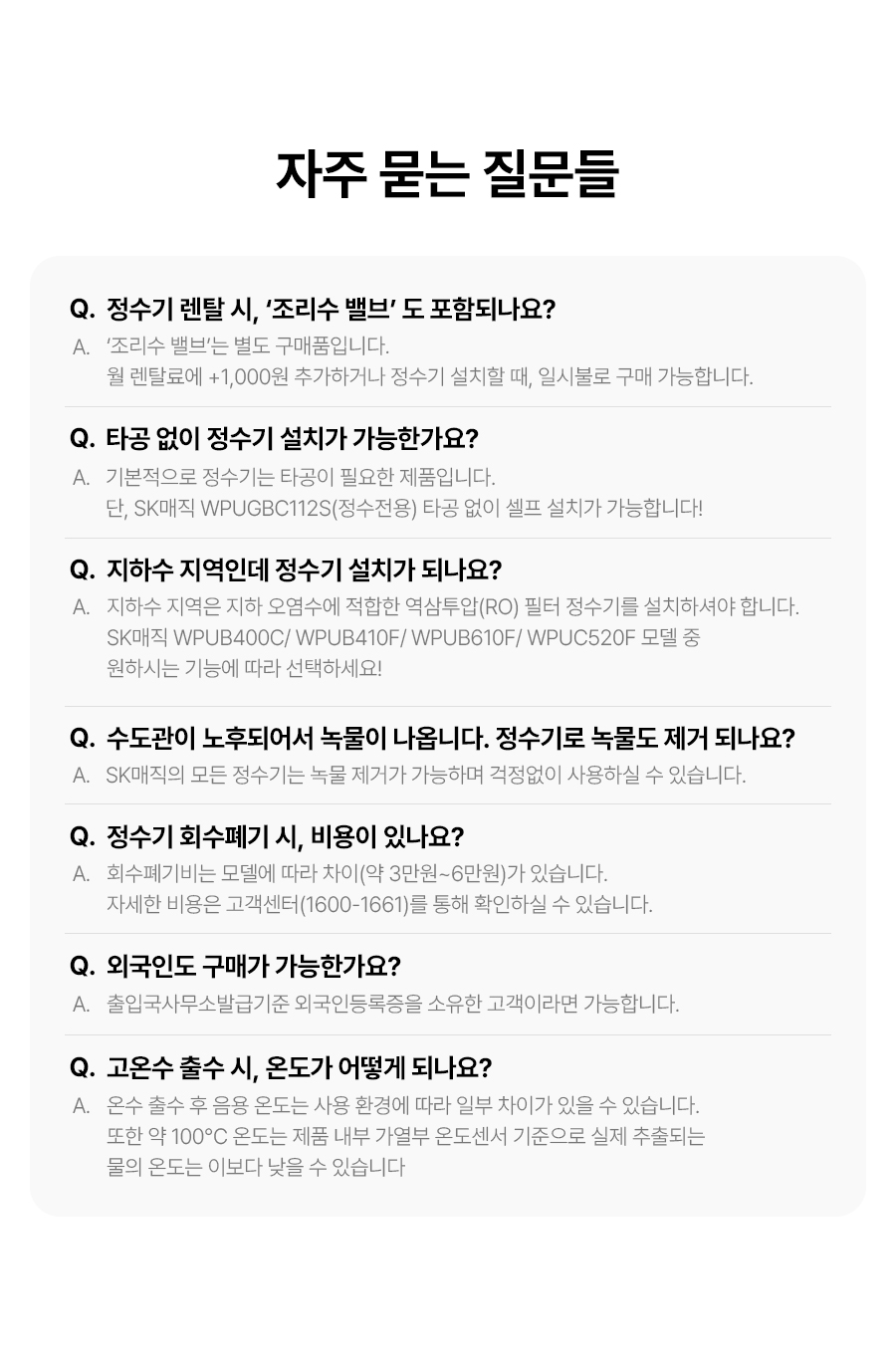 SK매직 워터룸정수기 렌탈 UV안심케어 WPU-B400C