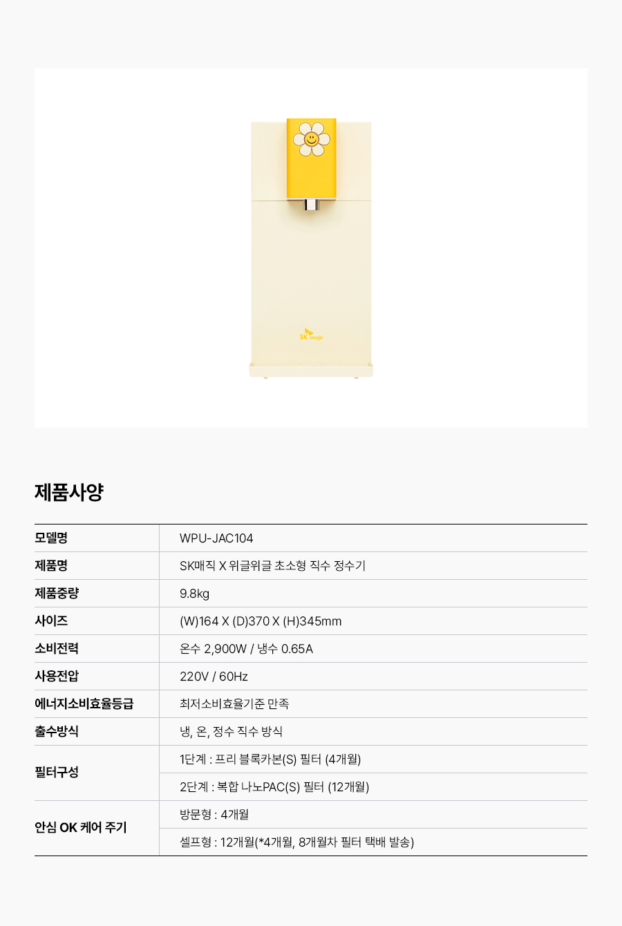 • [SK매직] SK 매직 정수기 렌탈 초소형 직수 냉온 WPU-JAC104SP WPU-JAC104SP